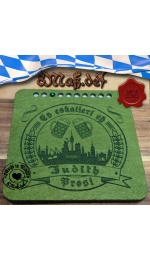Unser Filzl ( Fuizl ) markiert den Paltz für Deine Maß oder Halbe, hält den Tisch trocken und mit der praktischen Bestellrückseite kommt man ruck zuck zu einem neuen Bier.
