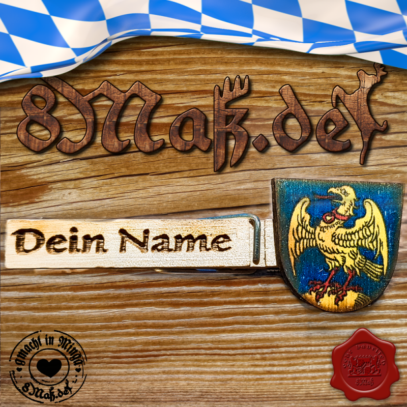 Bei grösseren Bestellungen kann Die Namensliste auch gern per eMail gesendet werden. (info8Mass.de)