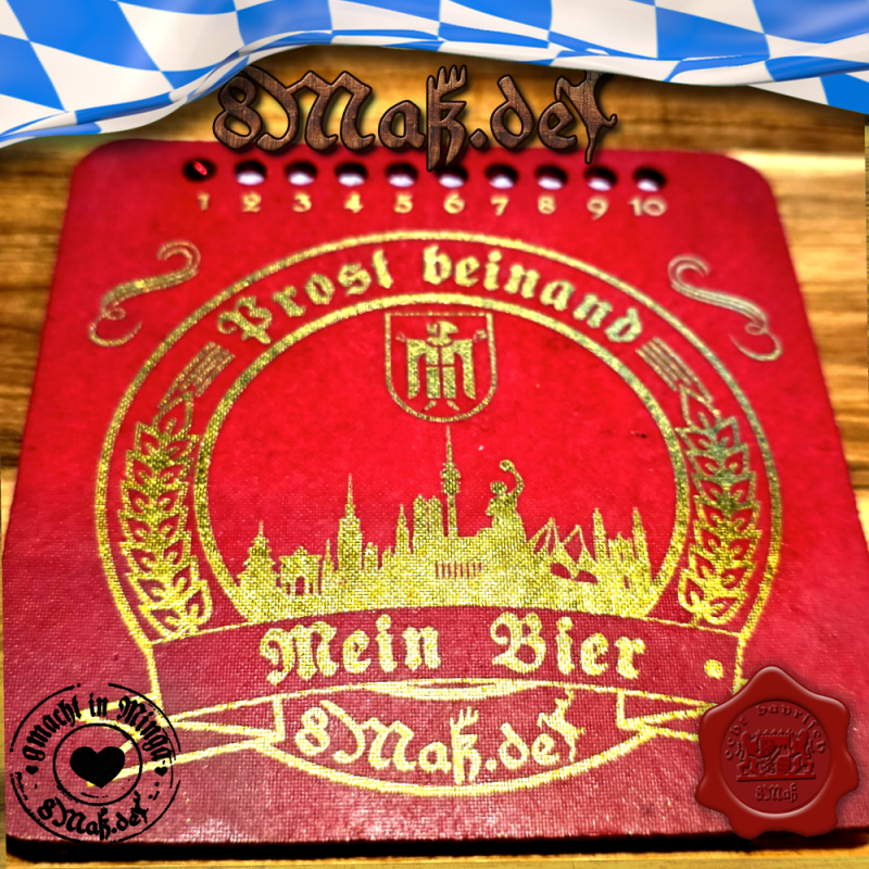 Mit dem magnetischen Bierzähler und die Rückseite ist mit "no a Bier" bedruckt.